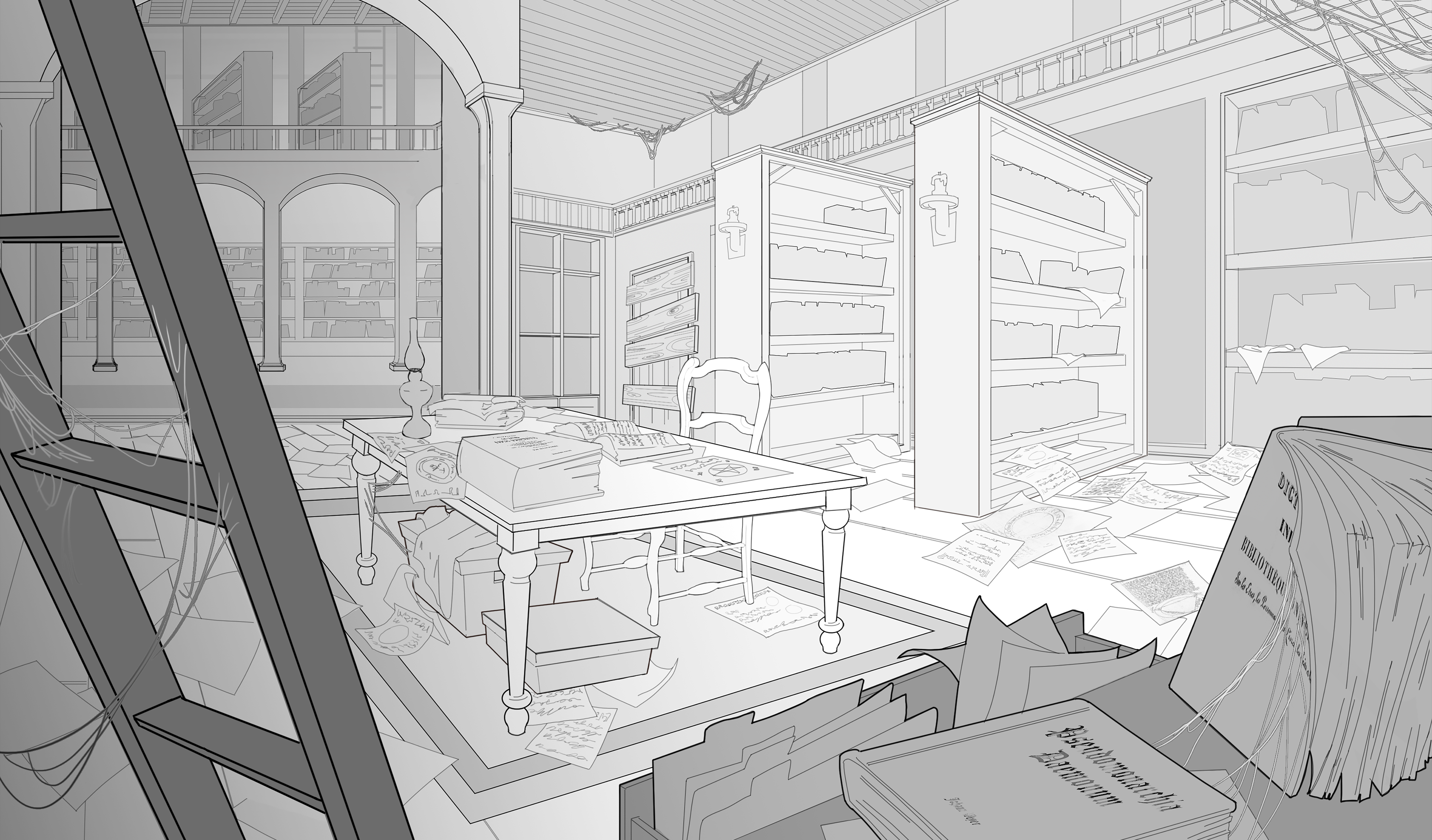 A layout for a dropped project of mine that took place in a supernatural-oriented school. This is what I imagined the library would look like.